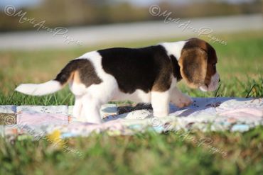 Stinker and Clyde are both DNA tested for the MLS (Musladin-Lueke Syndrome) common in Beagles. Both are Negative and non-carriers so we can guarantee their puppies will not be affected by MLS