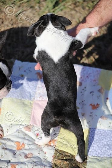 Franny and Apollo are both DNA tested for the JHC (Juvenile Hereditary Cataracts) common in Boston Terriers. Both are Negative and non-carriers so we can guarantee their puppies will not be affected by JHC!