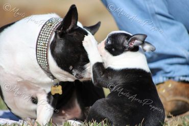 Angel & Duke are both DNA tested for the JHC (Juvenile Hereditary Cataracts) common in Boston Terriers. Both are Negative and non-carriers so we can guarantee their puppies will not be affected by JHC!